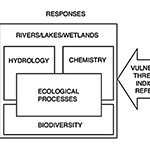 The structure of the website includes the following categories: Ecosystem type (lakes, rivers, wetlands) divided into three ecoregions (cold, temperate, warm). Each category (ecosystem-ecoregion combinations) is divided into five subjects: